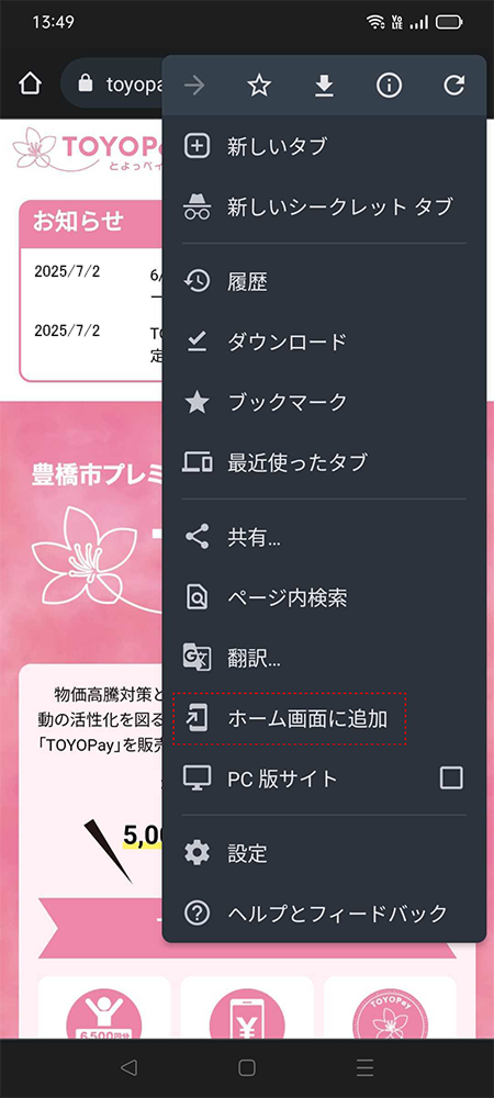 - TOYOPayをホーム画面に追加したい。